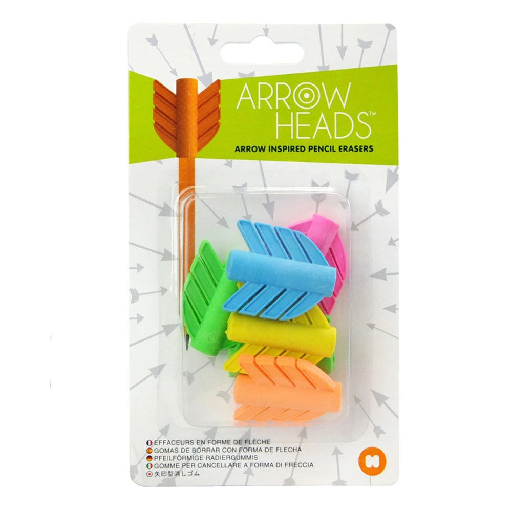 Pour transformer un crayon de papier en flèche, ajoutez simplement une gomme en forme de flèche au bout de votre crayon ! Les 6 gommes flèches se placent à l’extrémité de n’importe quel crayon de papier standard. Un cadeau original et idéal pour tous les dessinateurs de pommes, d’arc, d’arbalètes, de cibles… et tous les autres qui ne savent pas trop dessiner et qui doivent gommer souvent leurs piètres dessins ! Enfin une flèche destinée à une fin utile pour gommer les erreurs de la vie !
