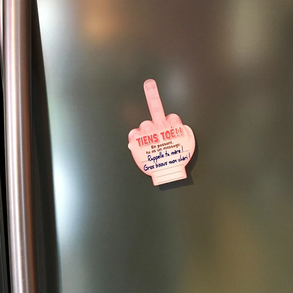 Lorsqu’on laisse un message à quelqu’un, il est essentiel d’attirer son attention pour être certain que le message soit vu et lu. Deux manières possibles pour susciter l’intérêt : utiliser un papier de couleur vive ou un stimulus visuel plus percutant, comme un doigt d’honneur par exemple.
