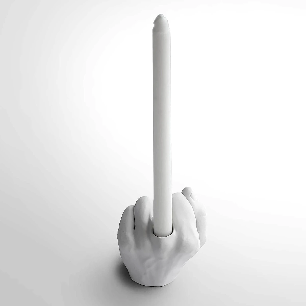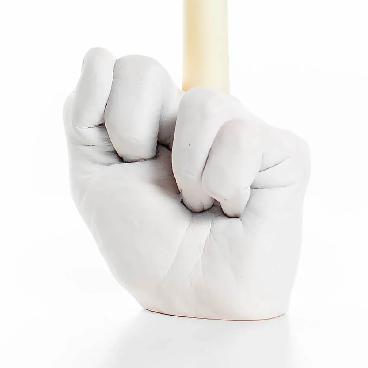Quitte à allumer une bougie, autant qu’elle ait du style ! si c’est pour ressortir le chandelier désuet de votre grand-mère, non merci ! le est compact et efficace. Placé sur n’importe quelle étagère ou table sans la bougie, il a l’air parfaitement innocent. Il passera juste pour ce qu’il est : une superbe sculpture de poing en polyrésine magnifiquement réalisée. Installez la bougie en lieu et place du doigt majeur et le prend tout son sens. Utilisez-le pour diffuser une agréable lueur d’ambiance en transformant ce doigt magistral en doigt d’honneur à l’obscurité. Votre entourage ne restera certainement pas indifférent à cette jolie réalisation d’art très contemporain, tout dépendra de leur ouverture d’esprit.