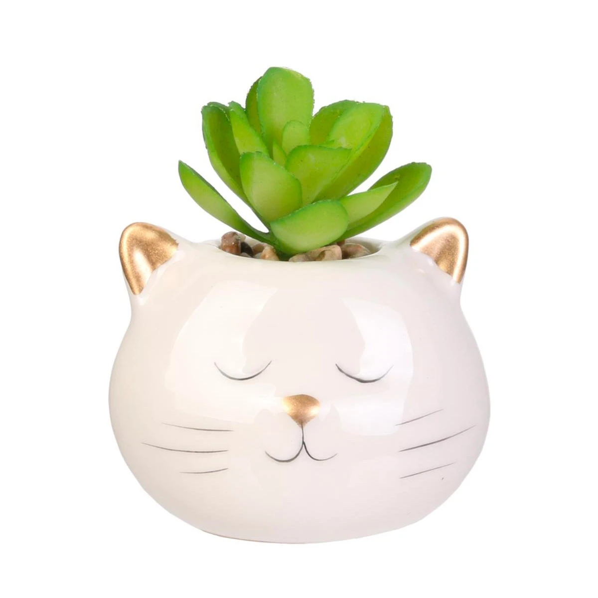Livré en couple, ce petit chat et cette licorne trouveront leur place facilement dans votre logement pour apporter une touche fantaisiste et verdoyante qui ne nécessitera aucun arrosage. Avec leur céramique blanche vernie et leur dorure, les ces petites créatures sont à croquer !