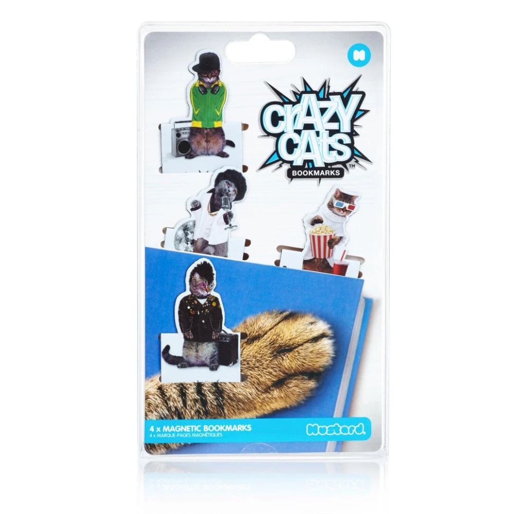 Extrêmement pratiques car le magnétisme leur permet de rester fixés sur la page de votre choix grâce à leur corps en deux parties qui (sans sortir les griffes). Ces sont absolument craquants avec leur looks improbables : l’un est passionné de film en 3D en se gavant de pop-corn, l’autre est résolument dans un trip disco et boule à facettes, le troisième est un rappeur infernal avec sa sound machine et le dernier est clairement un punk. Un cadeau parfait pour quelqu’un qui adore lire avec un minou blotti sur les genoux !