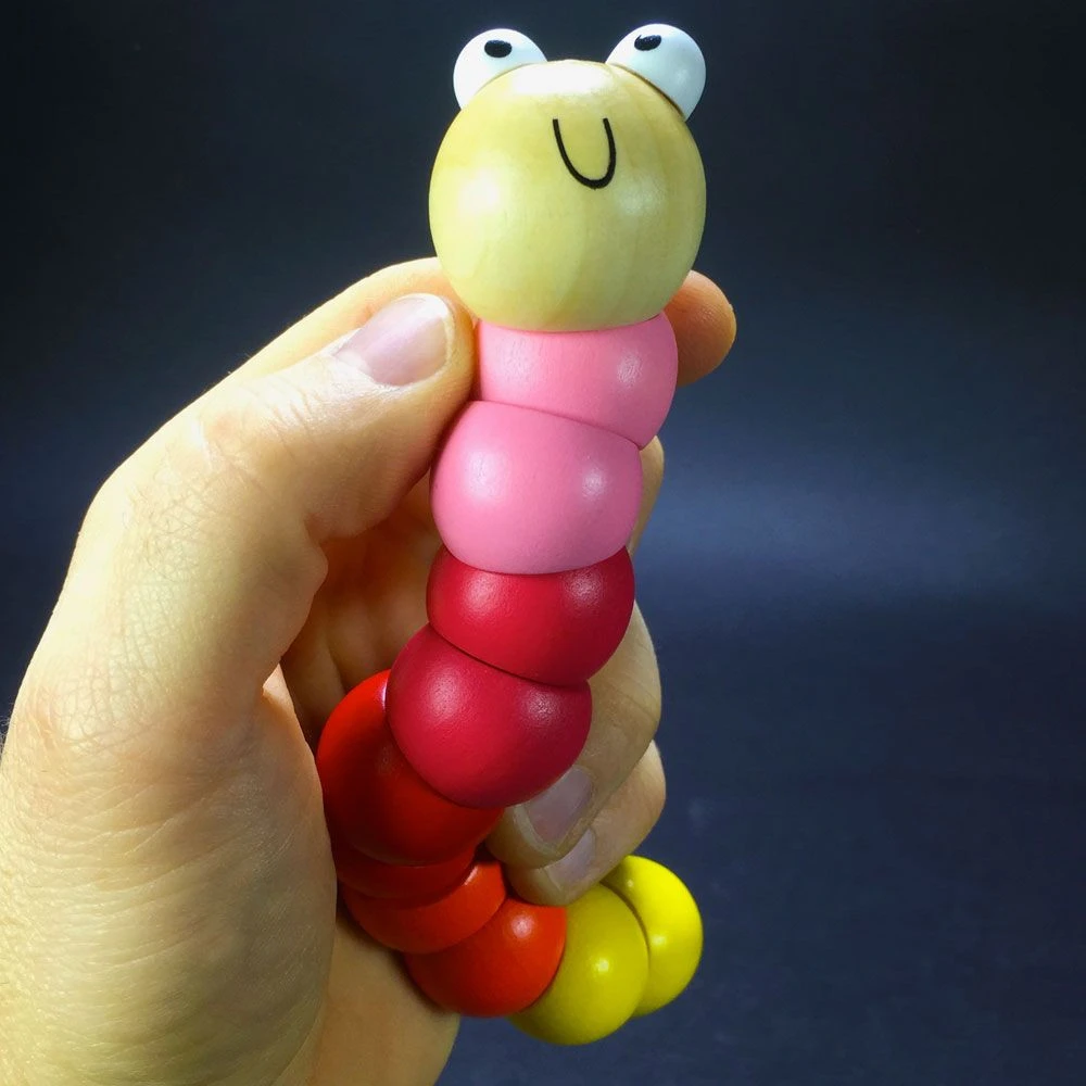 La Chenille en bois à tortiller est un véritable antistress. Son corps est composé d’une dizaine de billes de bois reliées avec une corde élastique. D’une longueur de 16 centimètres, la Chenille en bois se tord et se tortille dans tous les sens !