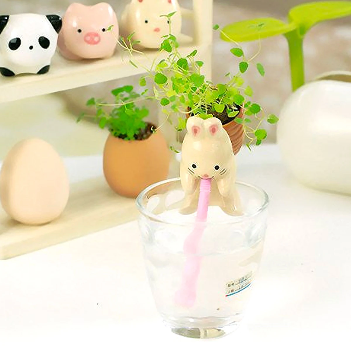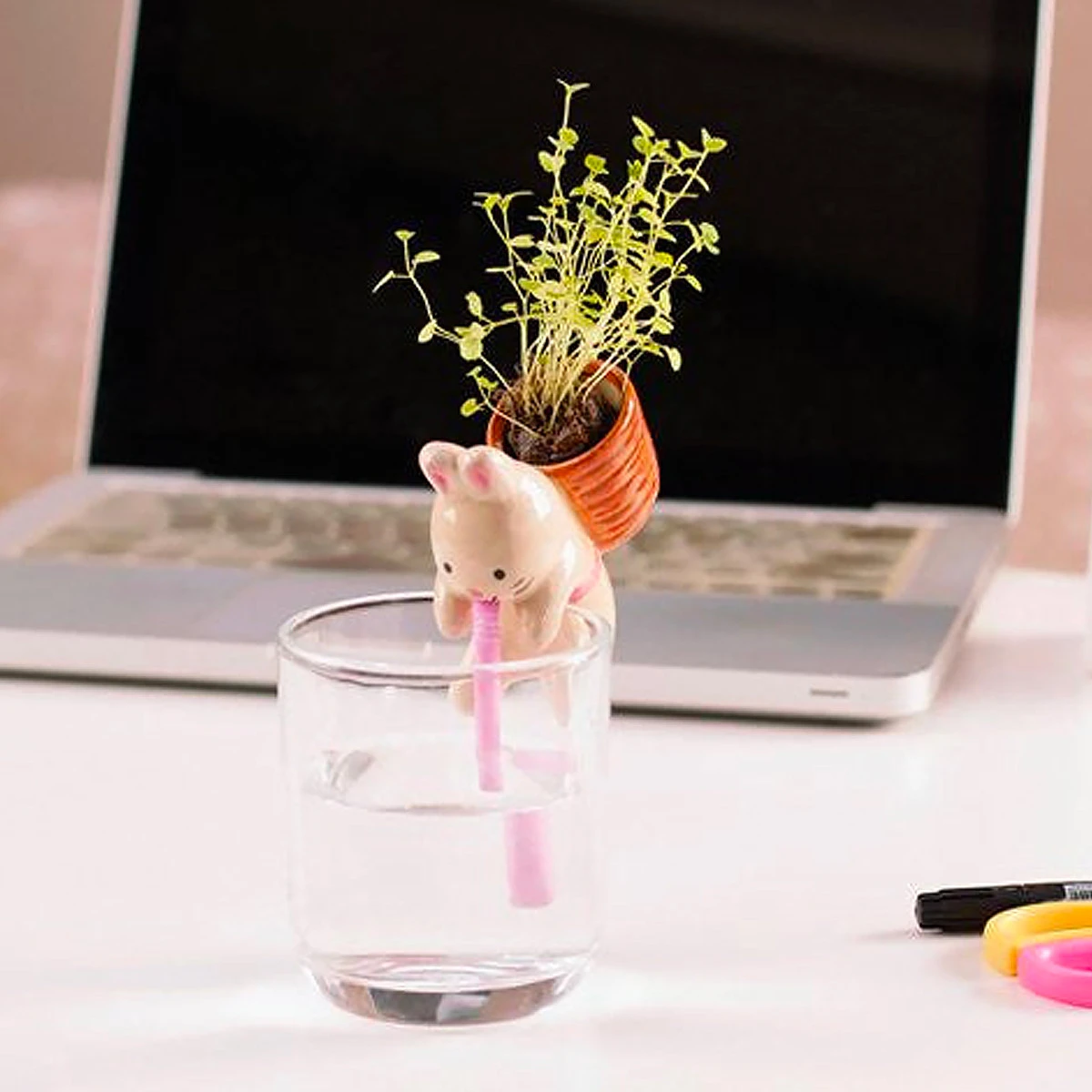 Chuppon s’accrochera au rebord du verre et plongera sa paille pour en boire toute l’eau. Pour vous témoigner sa gratitude, Chuppon vous offrira de jolies que vous pourrez déguster. Vous l’aurez compris ce mignon petit lapin en céramique est en fait une dans laquelle vous pourrez faire pousser un pied de fraises sauvages. Le lapin est livré avec tout le nécessaire pour démarrer la pousse. L’arrosage se fait dans le verre (non fourni) et l’eau remonte à la plante par capillarité à travers la paille. Un super mignon à mettre sur son bureau ou dans sa et qui sent bon la fraise !