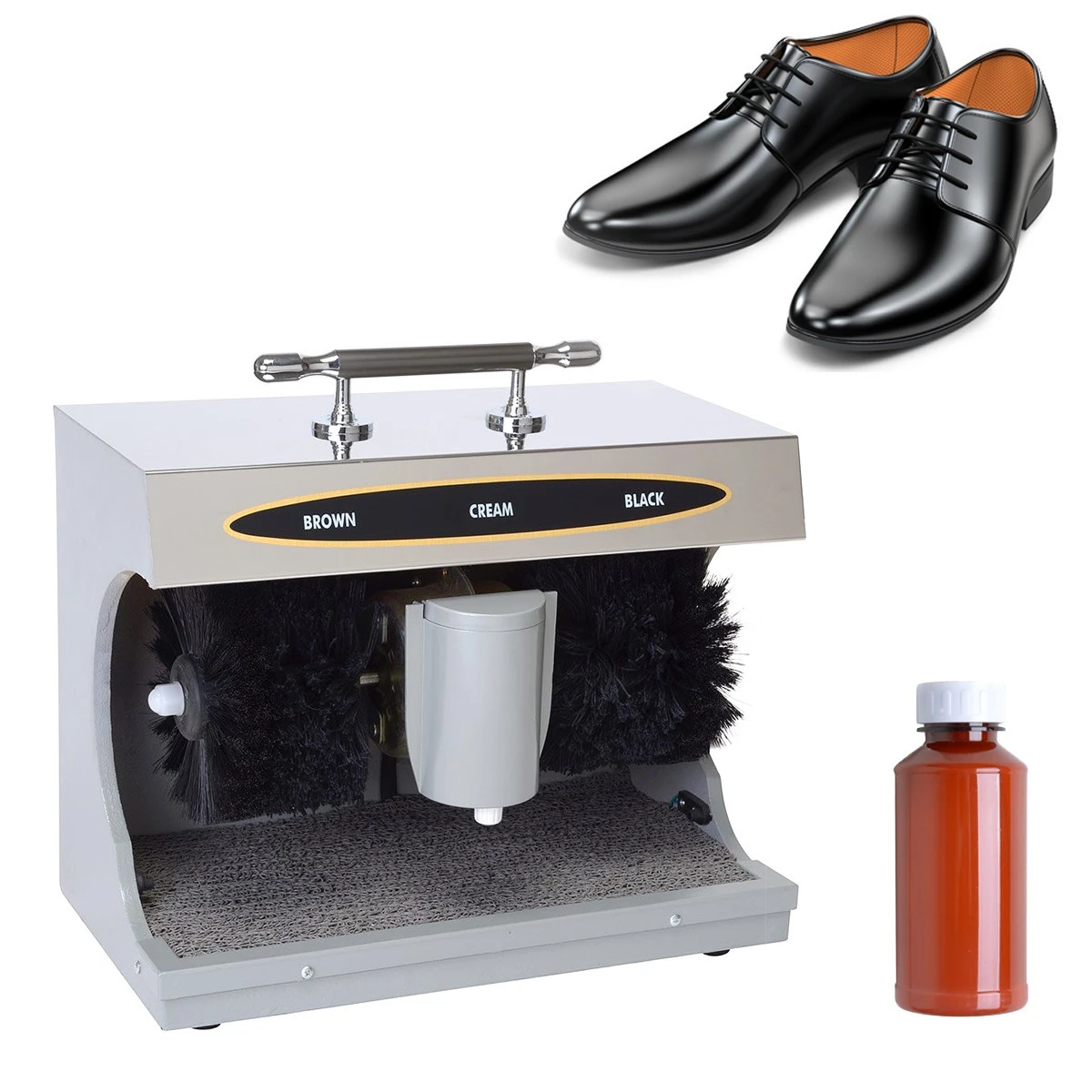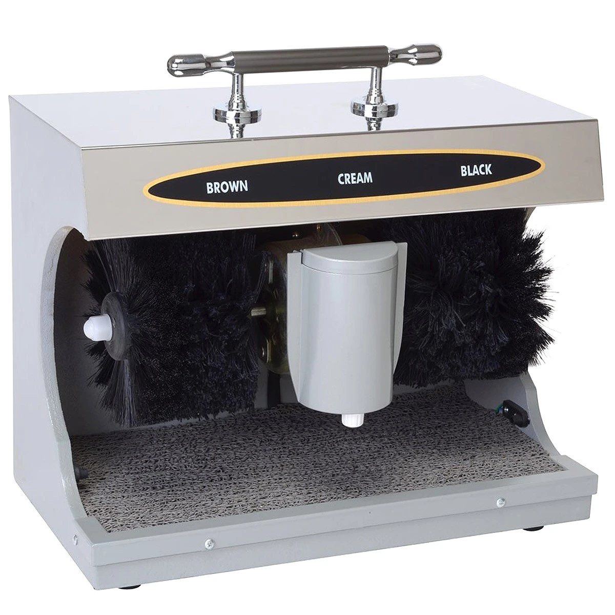 On trouve habituellement ce type de machine en libre service dans des hôtels haut de gamme, mais avec la vous pourrez vous équiper exactement du même type de machine. Oubliez le laborieux dépoussiérage de vos chaussures et l’huile de coude pour les faire briller ! Avec cette machine magique, vos seront en un clin d’oeil. Placez votre chaussure sous la brosse, l’appareil se met en marche automatiquement. Dépoussiérez la chaussure avec le côté dur de la brosse, appuyez ensuite sur le bouton du récipient de cirage pour libérer la quantité de cirage nécessaire sur la brosse, et voilà ! vos chaussures sont comme neuves et brillent de mille feux pour affronter la journée.