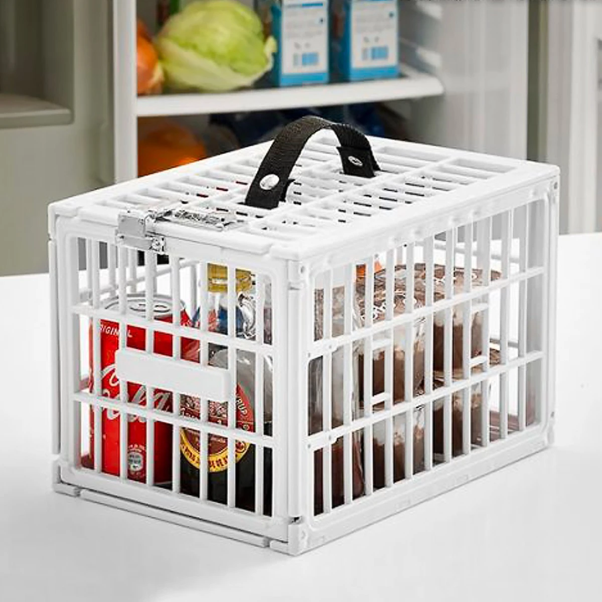 Le est muni d’un verrou métallique à code, permettant de sécuriser le précieux contenu d’une cage spéciale et très résistante, surmontée d’une petite poignée de transport qui vous permettra de la transporter comme une lunch box. En plus de vous protéger des colocataires gourmands ou des collègues peu scrupuleux, ce peut aussi empêcher quelconque individu curieux ou allergique à certains aliments de consommer la nourriture ou les boissons (alcoolisées ou non) retenues prisonnières. Très pratique pour éviter de confondre (intentionnellement ou non) la nourriture pour les colocations et éviter les disputes avec les collègues pour savoir si Christiane de la compta ou Jean-Claude du service commercial a volé votre goûter.
