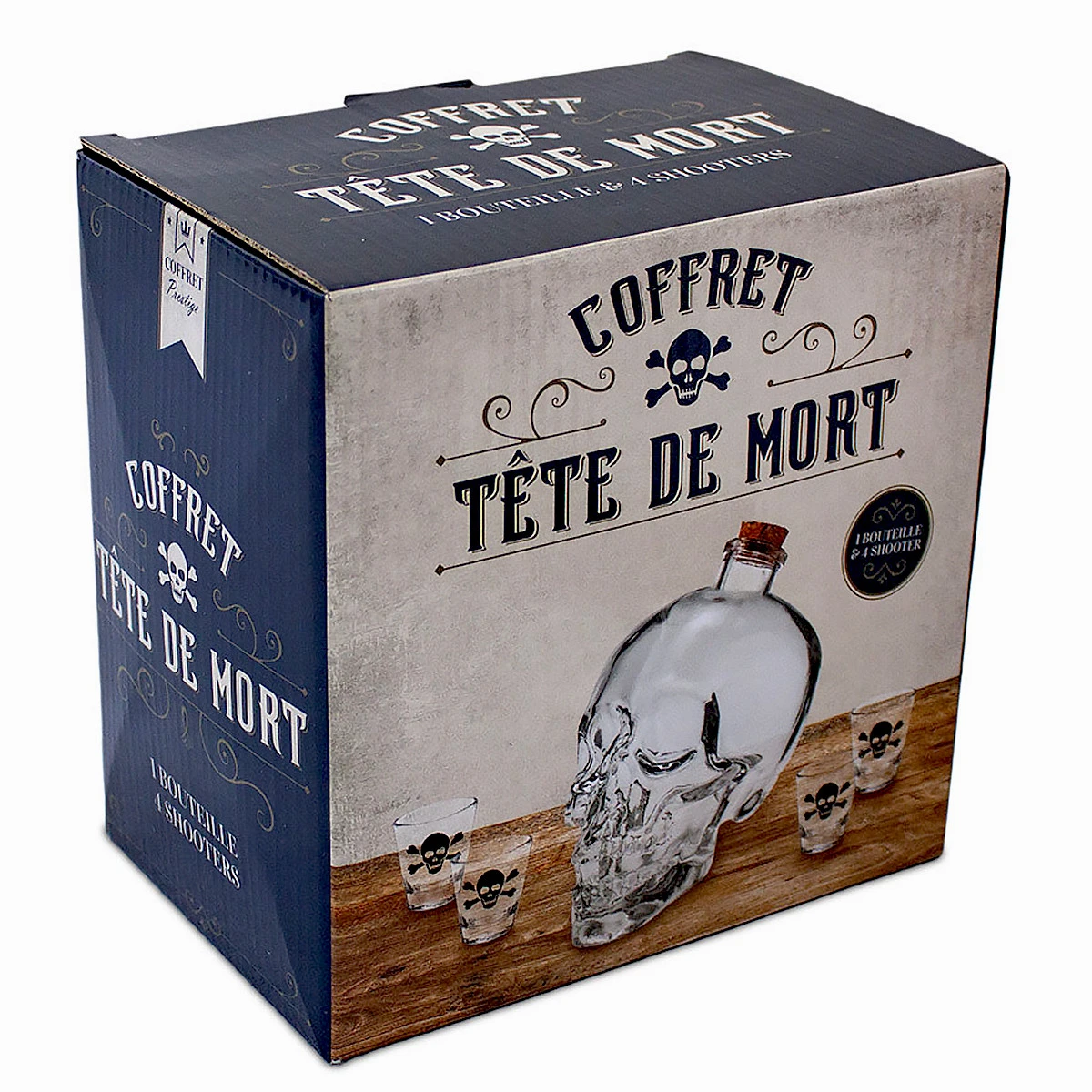 - Coffret tête de mort bouteille et shooters,