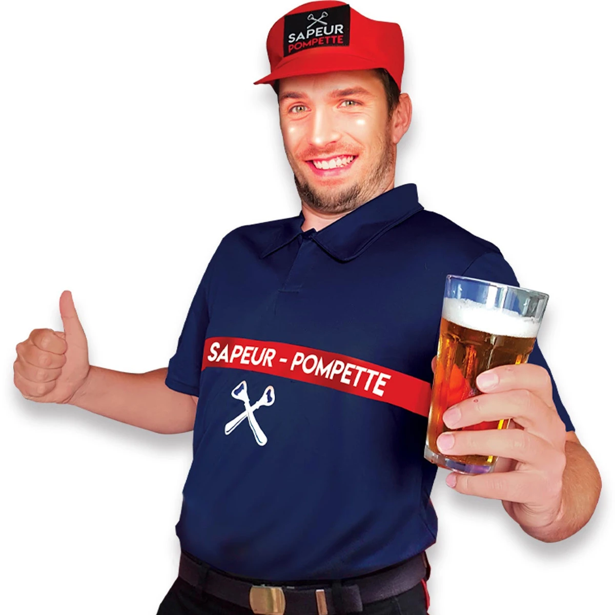 Les Sapeur-Pompette recrutent ! engagez-vous et combattez les feux de gosier ! Il vous suffit pour cela d’enfiler le Ce déguisement humoristique est composé d’un polo bleu marine et d’une casquette rouge sur lesquels on peu lire la mention « Sapeur-Pompette ». Le logo quant à lui est réalisé avec deux décapsuleurs en croix sur la casquette, le torse et dans le dos ! Ainsi déguisé, vous serez accueilli comme le sauveur des assoiffés !