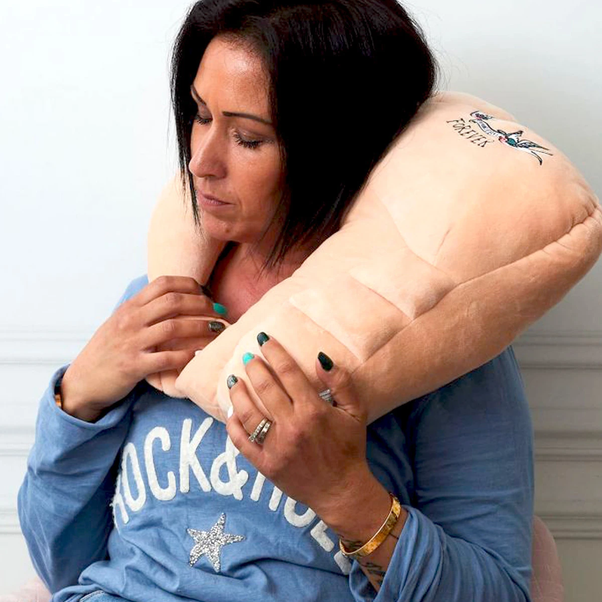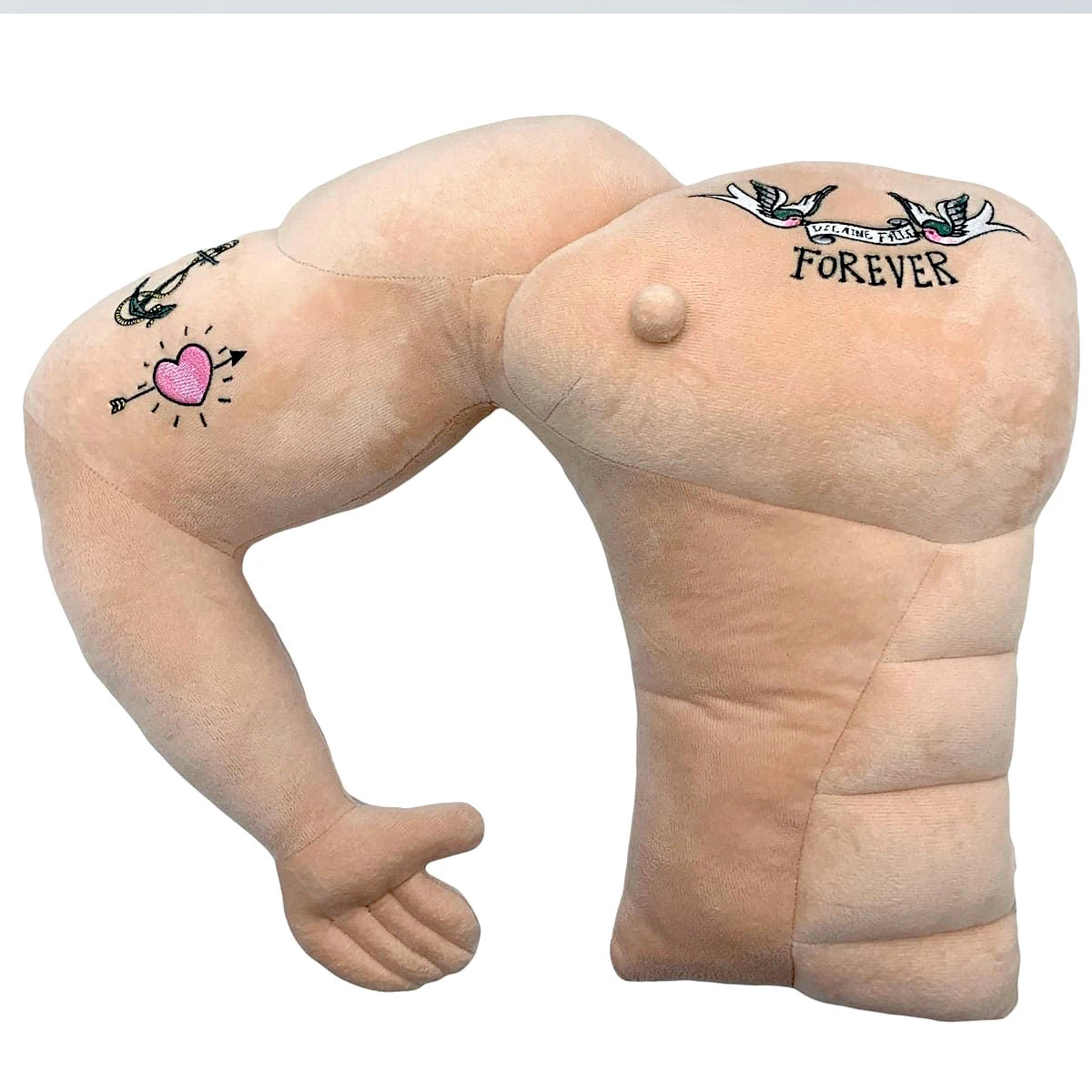 Ce coussin est le pour compenser l’absence de votre compagnon surtout si vous n’aimez pas vous sentir seul(e) pour vous endormir. Toujours , le vous tend le bras ! il ne vous reste plus qu’à vous blottir contre ce torse moelleux et sentir son bras autour de votre cou. Vous apprécierez sa musculature impressionnante, la fermeté de ses biceps et de ses abdominaux. Tatoué comme un « gros dur », il n’est que douceur et tendresse à votre égard. Parfait soutien pour caler confortablement votre cou pendant une petite sieste, Le vous sera ! même si vous titillez son téton qui pointe, il ne gesticulera pas sans arrêt sous prétexte que vous le dérangez ou ne vous demandera simplement pas de vous lever pour lui apporter une bière… Un cadeau hilarant signé par les « VilainesFilles ».