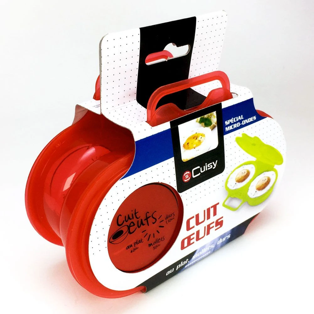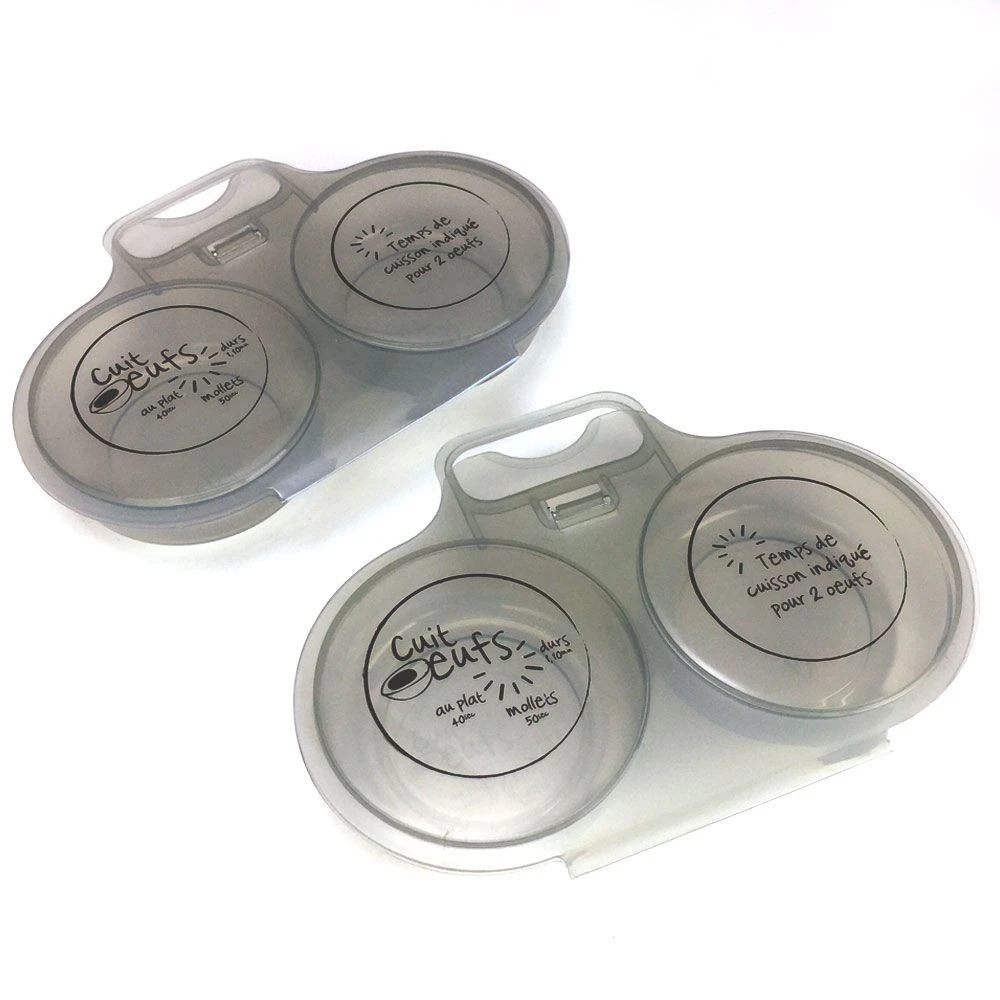 Pour cuire vos oeufs, il suffit de déposer le contenu d’un oeuf (sans la coquille évidemment) dans chaque cavité du Cuit-oeuf DUO micro-ondes et d’en percer le jaune avant de la mettre à cuire ! En variant sur le temps de cuisson, vous pourrez alors obtenir en quelques secondes un oeuf au plat, un oeuf mollet ou un oeuf dur ! Le Cuit-oeuf DUO micro-ondes est vendu par deux soit la possibilité de cuire quatre oeufs !