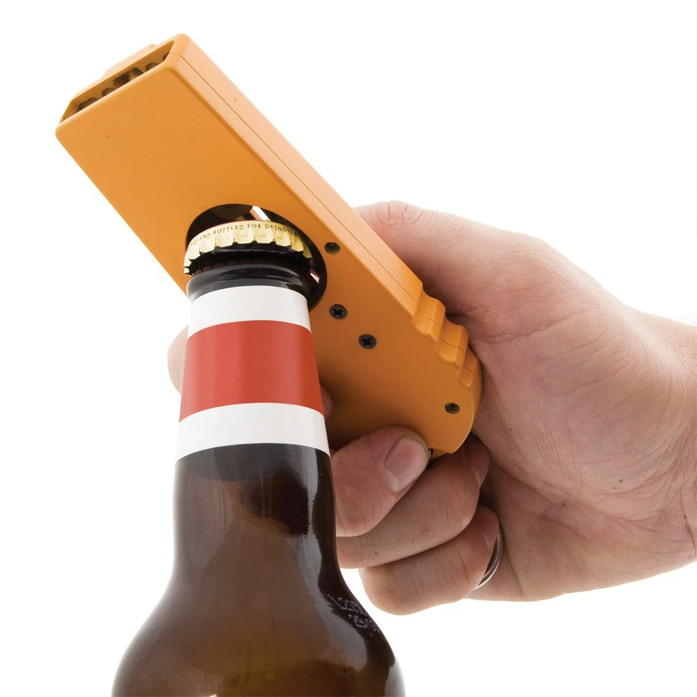 Avec son porte-clé, vous ne vous séparerez jamais de votre hyper super méga décapsuleur. Décapsulez, armez, visez et regardez la petite capsule partir comme un frisbee !