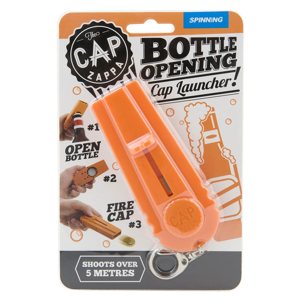 Comment transformer une capsule en micro-frisbee ? c’est simple ! Voici un objet qui va impressionner vos amis et les spectateurs qui participent à votre fête ! Le Décapsuleur lance-capsules Cap Zappa est non seulement un outil qui vous permet d’ouvrir vos capsules de bouteilles sans effort mais il possède en plus une autre fonction qui réveille immédiatement le garnement qui est en vous : il lance la capsule à plus de 5 mètres !