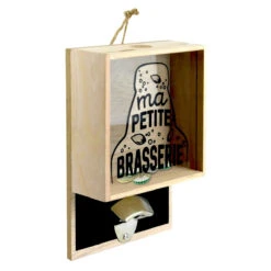 Accrochez cet élégant décapsuleur à votre mur à un endroit pratique pour décapsuler vos bouteilles et déposez la capsule dans le réservoir à capsules vitré. Au fil du temps et en fonction de votre soif, le compartiment à capsules se remplira laissant apparaître tous les types de bières que vous appréciez. Le est réalisé en bois et la vitre peut être coulissée pour vider les capsules. Les collectionneurs vont être ravis !