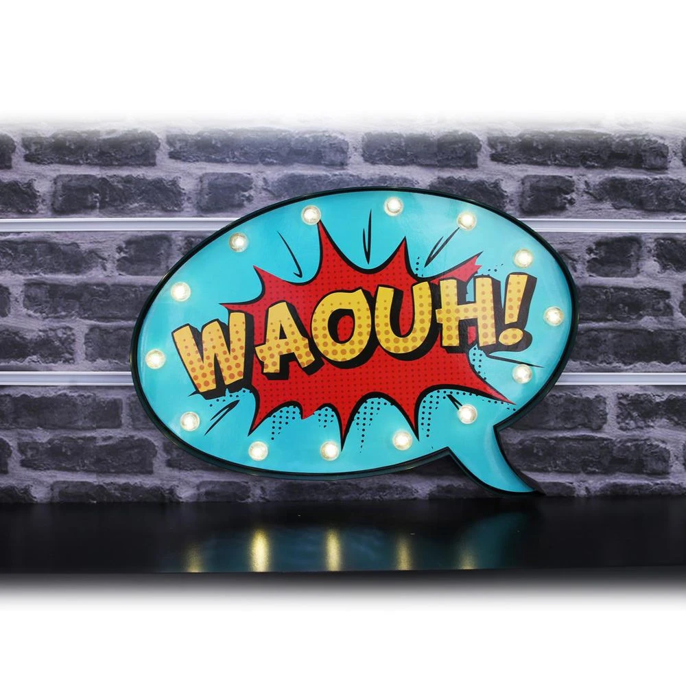 Dans le plus pur style rétro et Comic Strip, la décoration bulle de BD lumineuse peut s’illuminer grâce à ses leds blanches sur le pourtour. La bulle de BD lumineuse peut être accrochée au mur ou posée sur un meuble selon votre choix. Un cadeau déco pour tous les passionnés de décoration dynamique !