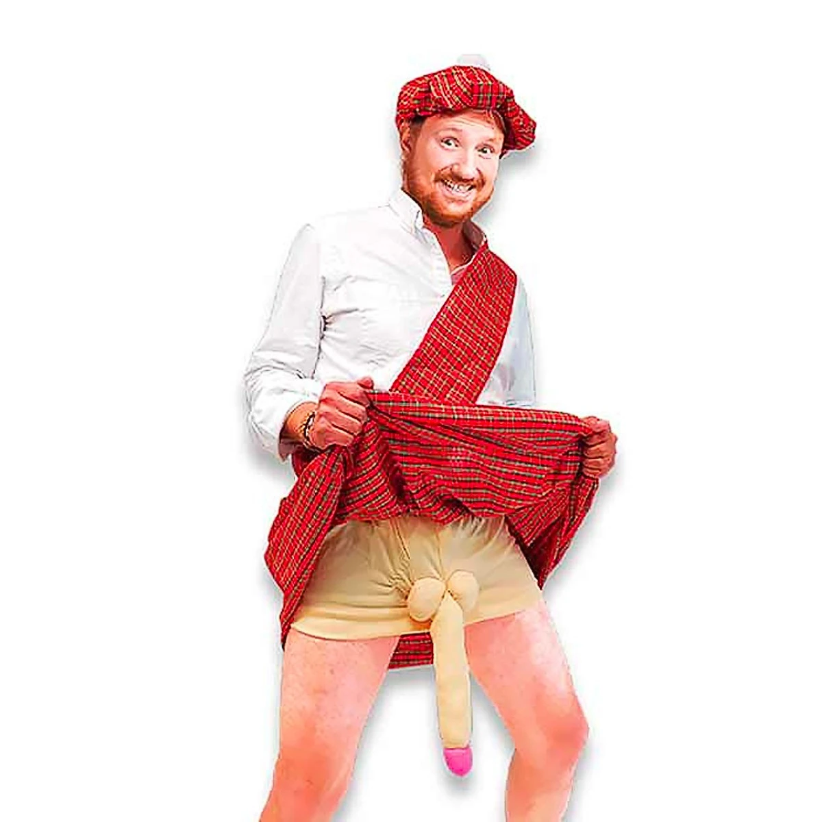 - Comprend un chapeau, un kilt, une écharpe, un caleçon couleur chair et un faux zizi en peluche (le monstre),