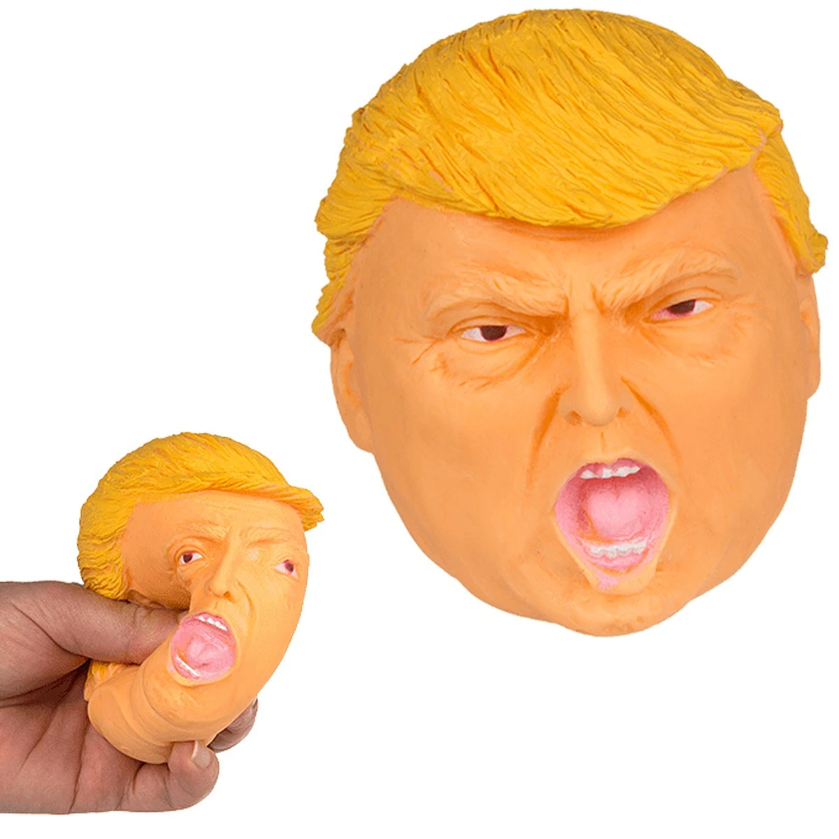 Cette grosse balle flasque est à l’effigie du président américain, célèbre pour son caractère imprévisible et ses coups de gueule démesurés. Vous prendrez un grand plaisir à écraser, étirer, frapper, compacter, tortiller, comprimer, lancer, fracasser, déformer ce visage colérique. Le petit visage bouffi de la balle est prêt à se faire martyriser par vos mains stressées ! Une balle antistress agréable au toucher et fascinante pour le regard !