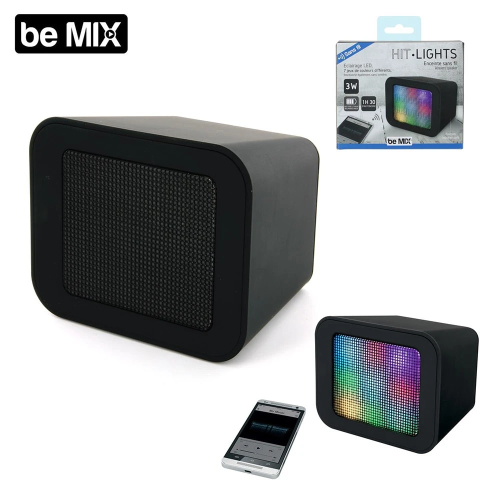 est rechargeable et son utilisation peut se faire sans fil via pour être utilisée n’importe où ! Puissance 3 watts, son clair, elle est impressionnante lorsque sa grille s’anime de toutes les couleurs. Sept effets de couleurs différents, il est toutefois possible des désactiver la fonction lumineuse pour l’utiliser comme une enceinte classique. Un cadeau génial pour améliorer le son de votre smartphone avec et se relaxer en admirant les effets lumineux colorés !