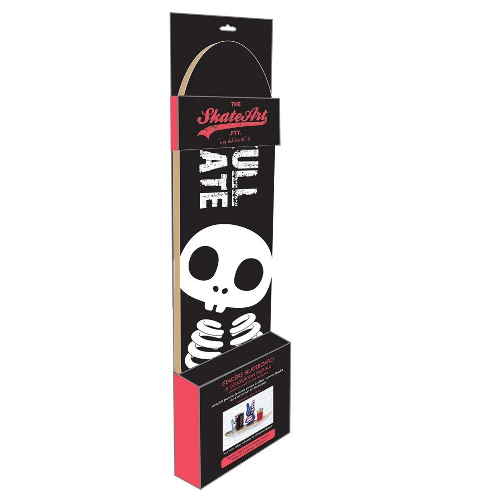 Véritable planche de skateboard en bois, l’étagère skateboard tête de mort est un objet de décoration urbain et ultra-tendance parfait pour une chambre d’enfant et d’adolescent. La visserie, les équerres de fixation, les chevilles et la notice de montage sont incluses dans l’étagère skateboard tête de mort.