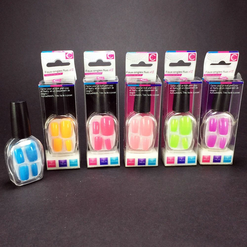 Optez pour un look glam, pop et flashy en un claquement de doigts ! Les Faux-ongles fluo adhésifs se posent très facilement. Après avoir choisi la taille appropriée à chaque ongle, il suffit de poser le faux ongles sur votre ongle et d’effectuer une pression pendant dix secondes, et le tour est joué ! Soigneusement emballé dans un boîte en forme de vernis à ongles, les 12 Faux-ongles fluo adhésifs vous donnent des mains éclatantes pour toutes occasions !