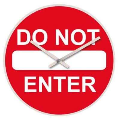 Sens interdit, personne ne rentre, ne pas déranger ! L’horloge DO NOT ENTER représente un sens interdit affublé de l’inscription Do Not Enter qui signifie clairement « Ne pas entrer ». Cette horloge en verre d’un diamètre proche d’un panneau de signalisation est un objet de déco très sympa !