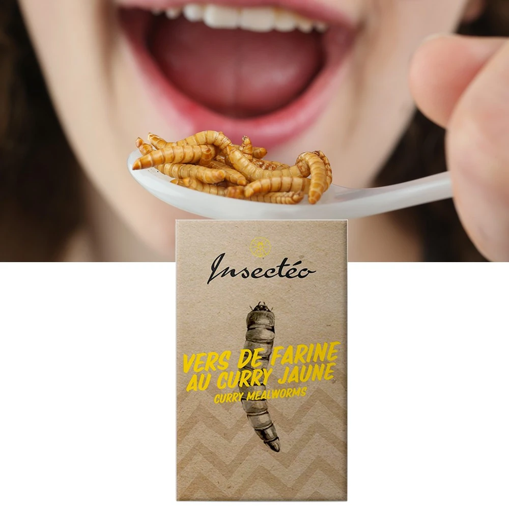 Ces petites bestioles, vous en avez déjà tous mangé sans le savoir. En effet, ils sont déjà largement utilisés par l’industrie agro-alimentaire où ils sont intégrés fréquemment sous forme de farine protéinées ; vous savez, ce sont les fameuses protéines animales qu’on retrouve dans la composition de certains aliments cuisinés. Les sont élevés en Europe et nourris avec des fruits, des légumes et feuillages. Cuisinés dans les règles de l’art et 100 % comestibles les Vers de farine au curry ont subi le processus suivant : congélation durant 48 heures, mise à ébullition et déshydratation au four à température basse. Cela permet de garantir une sécurité alimentaire totale, complétés avec des tests en laboratoire alimentaire pour vous assurer une . Vous serez surpris par leur saveur proche des chips ou de la noisette mais avec des qualités nutritionnelles bien supérieures aux traditionnelles chips. L’exotisme du curry vous fera oublier complètement que vous dégustez des vers. Un aliment à découvrir absolument. Manger des insectes, n’est pas différent de manger des escargots par exemple, ce n’est qu’une barrière culturelle et psychologique à franchir en faisant preuve d’ouverture d’esprit.