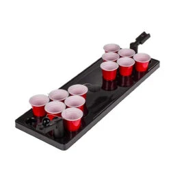 - Comporte une roulette, un tapis de jeu, 16 petits verres à shot, 60 jetons, 2 billes et 1 râteau,