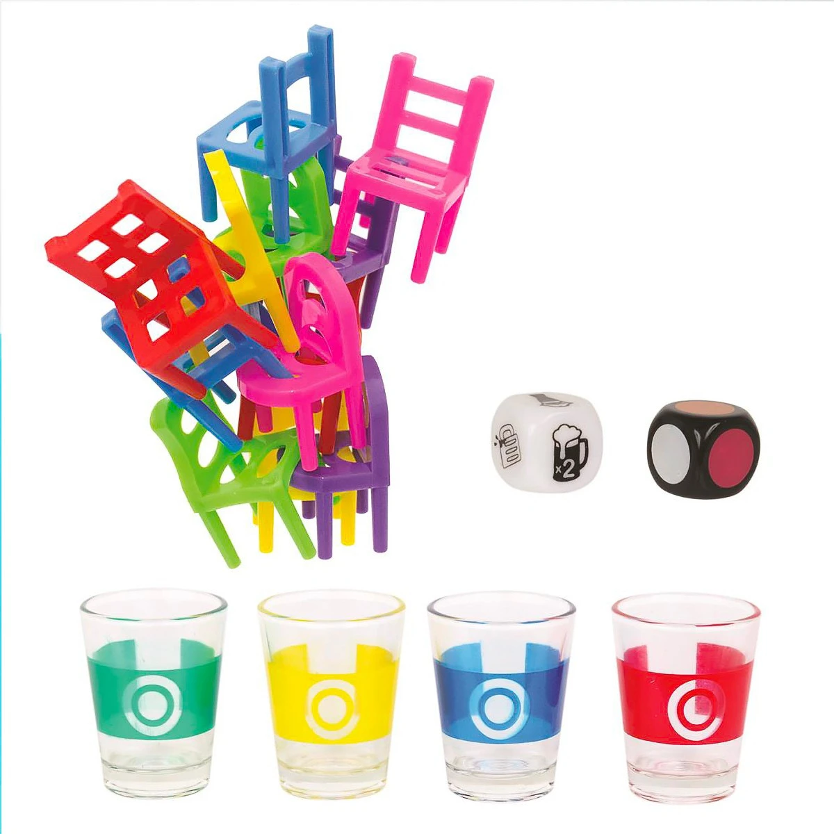Le jeu est simple : le but est d’empiler le plus possible de mini chaises (oui ce ne sont pas de vraies chaises) et de réaliser la tour la plus haute. Si vous échouez, vous buvez un shot ! Les joueurs suivants subissent le même sort. Bien entendu, plus vous perdez, plus vous buvez, plus vous perdez, plus vous buvez, plus vous perdez, plus vous buvez, plus vous perdez, plus vous buvez…. Le est un jeu infernal qui mettra votre habileté à rude épreuve.