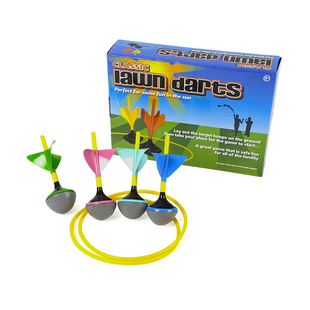 Notez que les fléchettes présentes dans le jeu ne comprennent fort heureusement pas de pointe et sont ainsi totalement . Ceci vous évitera notamment de vous faire « empaler » par le front entre les deux yeux. Les d’un poids de 90 grammes et leur extrémité est souple pour amortir les atterrissages. Ce jeu d’extérieur pour le jardin se joue en Il suffit de déposer le cerceau représentant la cible dans l’herbe, puis chaque joueur lance sa ou ses fléchettes en l’air en tentant d’atteindre le coeur de la cible. Les fléchettes les plus proches de la cible marquent un point, celles à l’intérieur de la cible marquent trois points. Les manches peuvent se succéder ainsi jusqu’à 21 points, mais rien ne vous empêche de définir un score plus bas ou plus haut. Un cadeau pour jouer à l’extérieur qui plaira à !
