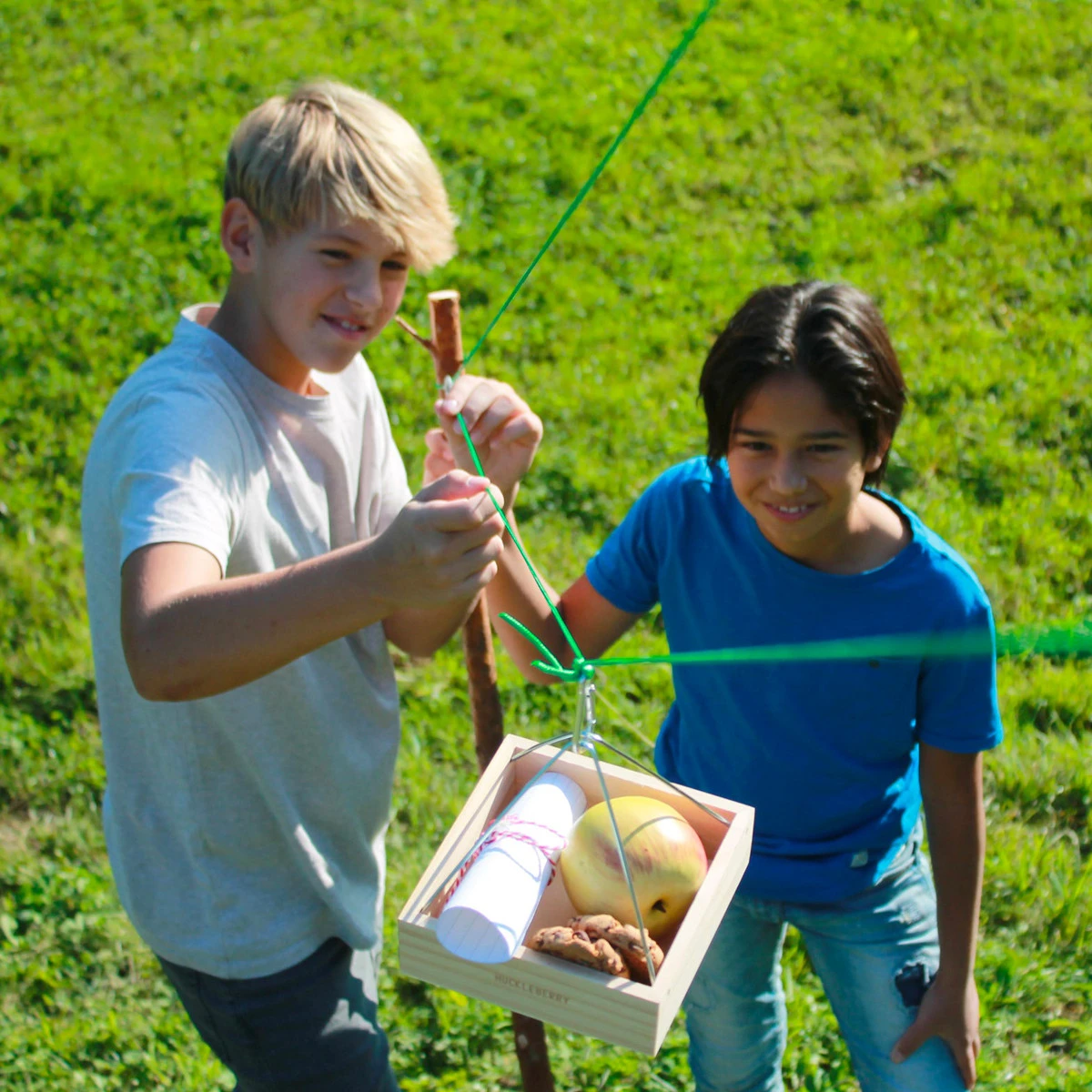 Ce kit éducatif comprend tout le nécessaire pour bricoler un mini-téléphérique entre deux arbres ou même depuis le jardin jusqu’à la fenêtre de votre chambre à l’étage. Un kit intelligent et ultra fun ! Ce est en plus fabriqué à partir de matériaux respectueux de la nature. La boîte est en bois pin, les poulies, les mousquetons et les tiges sont en métal. Ces matériaux durables assurent une utilisation à long terme, pour des heures de plaisir en extérieur. Les câbles sont en nylon, pour une résistance maximale. N’hésitez plus et faites de votre jardin un véritable parcours d’aventure avec cette mini-tyrolienne amusante et pratique. Elle est idéale pour les enfants et les adultes, pour des moments de divertissement en famille ou entre amis.