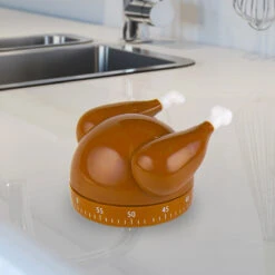 Dinde rôtie, gratin ou gâteau, cette charmante petite dinde rôtie sous forme de minuteur vous avertira dès que le temps de cuisson est écoulé avec sa clochette intégrée. Remontez le dans le sens des aiguilles d’une montre puis ajustez-le sur le temps désiré. Avec ses jolis pilons charnus, cette petite dinde vous mettra en appétit jusqu’à ce que vous sortiez « la grosse » du four.