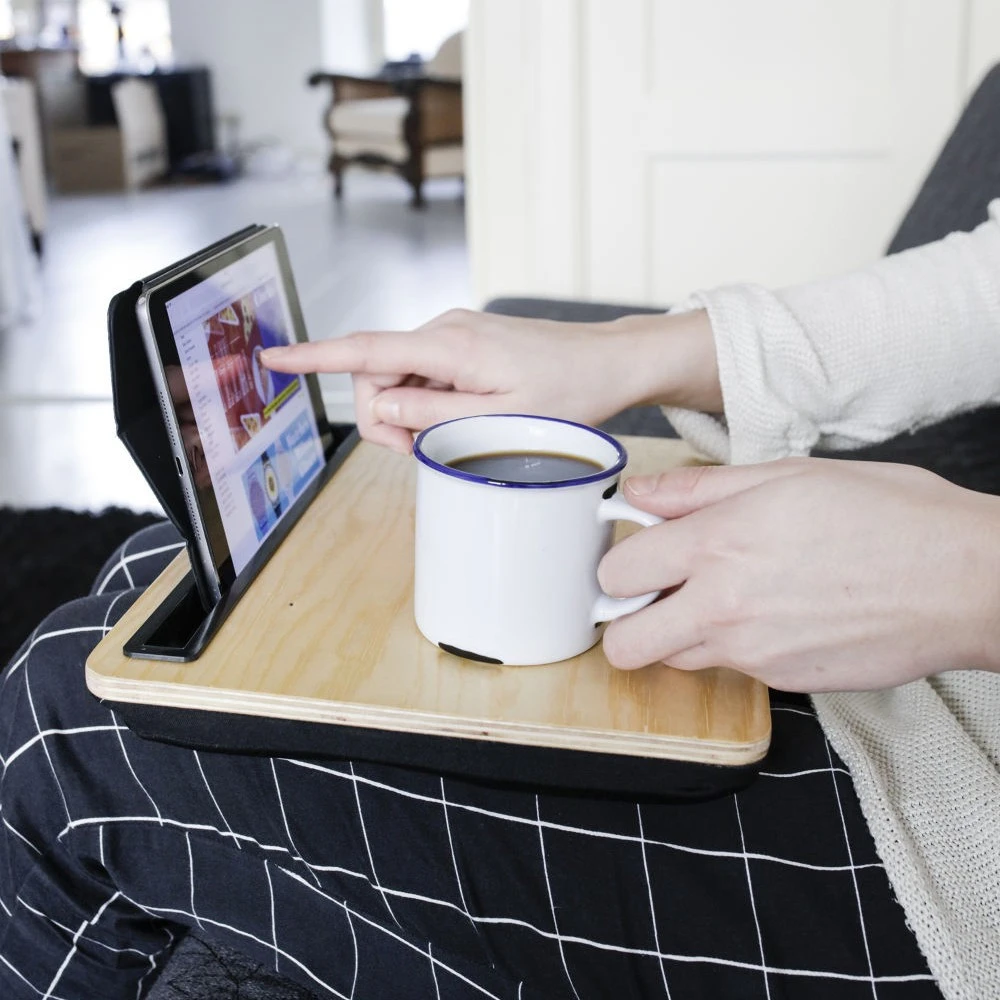 Lire son journal au petit déjeuner est devenu has-been ! Vous le faites désormais avec (iPad, samsung, nexus…). Avec le , profitez de vos deux mains libres pour lire votre tablette au lit, dans le canapé, en avion ou en train ! Sa est du plus bel effet et le inférieur en est doux et confortable pour vos cuisses ! La surface est tout à fait suffisante pour en utilisant le plateau comme bureau tout en bénéficiant de l’affichage de votre tablette, vous pourrez même y déposer votre clavier sans fil si vous en avez un. Une idée cadeau formidable pour tous ceux qui n’arrivent plus à se passer de leur iPad même en mangeant !