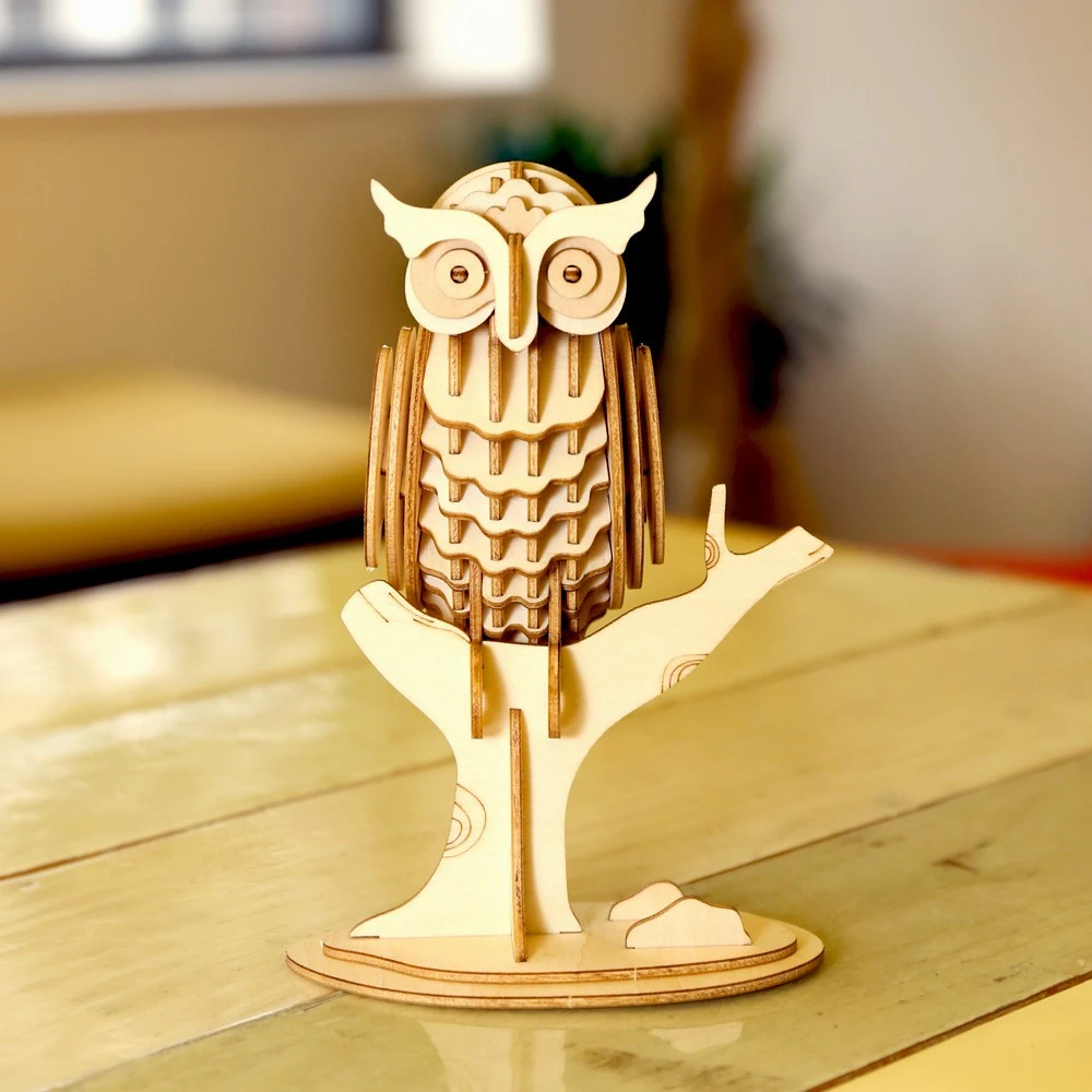 Le résultat est superbe : une magnifique chouette en trois dimensions juchée sur son perchoir. Pour concevoir ce beau rapace nocturne, il vous faudra relever le challenge et l’assembler avec patience et détermination. Toutes les pièces en bois du sont prédécoupées au laser, de sorte que l’assemblage se fait avec précision sans aucun outil ni colle. Il suffit de glisser les pièces les unes dans les autres et de les assembler en suivant le diagramme inclus. Un , car le résultat est particulièrement élégant.