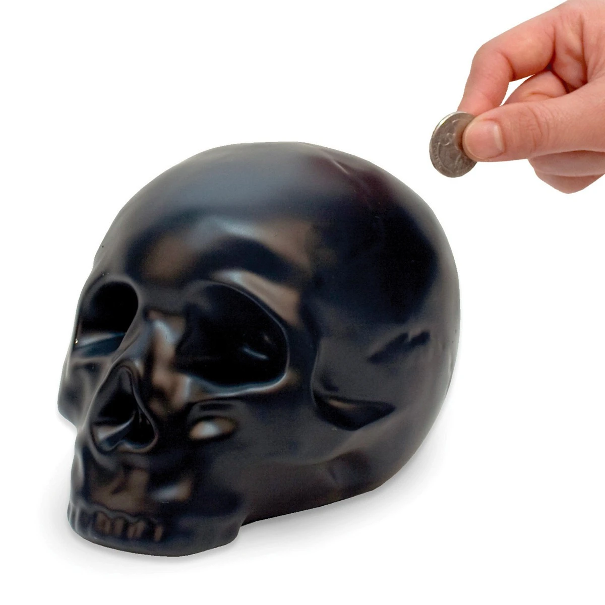 Cette tirelire en forme de crâne ou de tête de mort est fabriquée en céramique de qualité dans un noir satiné . La est équipée d’un bouchon en caoutchouc à la base pour récupérer votre « magot ». Il n’y a pas de symbolique particulière, rappelez-vous évidemment que vous n’emporterez pas vos économies dans votre tombe et cette est un petit pied de nez à la fatalité. Un cadeau parfait pour tout amoureux de l’anatomie et de tout ce qui est un peu obscur.
