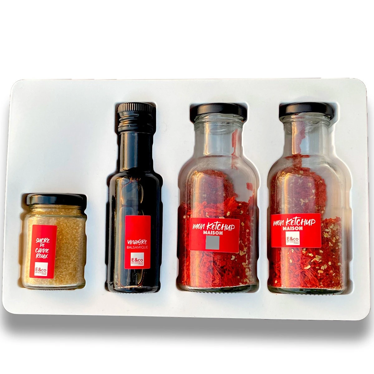 Cet ensemble astucieux contient tous les ingrédients nécessaires pour réaliser vous-même votre . Vous retrouverez ainsi le mélange à base de tomates séchées et d’oignons déshydratés savamment dosés pour un goût inimitable, du sucre de canne de la Réunion non raffiné et du vinaigre balsamique. Suivez à la lettre les indications de la recette et vous obtiendrez un délicieux ketchup sain et fait maison pour plusieurs semaines. Le est un cadeau qui comblera les gourmands.