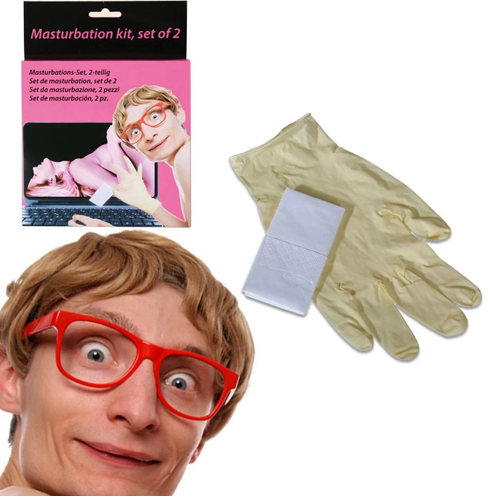 Mais non… il n’est pas dans nos habitudes d’en faire des tartines sur le sujet. Non, vraiment pas. Voici donc le kit de masturbation comprenant un gant en latex pour manipuler « l’outil » quel qu’en soit le calibre, un mouchoir en papier essentiel pour éponger le désastre et une cible en papier glacé au dos de l’emballage qui donnera une excellente excuse pour parfaire régulièrement l’entraînement assidu. Un cadeau idéal pour un « branleur » ou un jeune (de 18 ans) dont les hormones sont proches de la fusion ou pour un célibataire « endurci » ou encore pour un enterrement de vie de garçon, prétexte idéal pour justifier l’entretien régulier du canon…