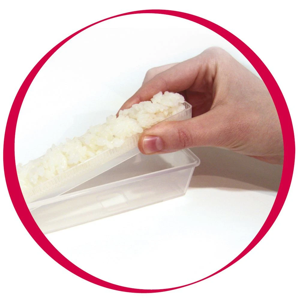Voici le Kit maki party : il s’agit d’un ustensile de cuisine qui va vous permettre de tricher un maximum pour réaliser vos makis. Il suffit de mettre une première couche de riz dans le moule, puis les ingrédients au centre et efin une seconde couche de riz. Pressez avec le couvercle. Démoulez facilement grâce au fond amovible et vous obtenez un de rouleau de riz. Vous n’avez plus qu’à le poser sur une feuille de nori et vous le roulez simplement. Un système super ingénieux qui va vous faire gagner un temps précieux dans la réalisation de vos makis ! Mais chuuut, gardez le secret et dites bien fort : « c’est moi qui les ai faits ! »