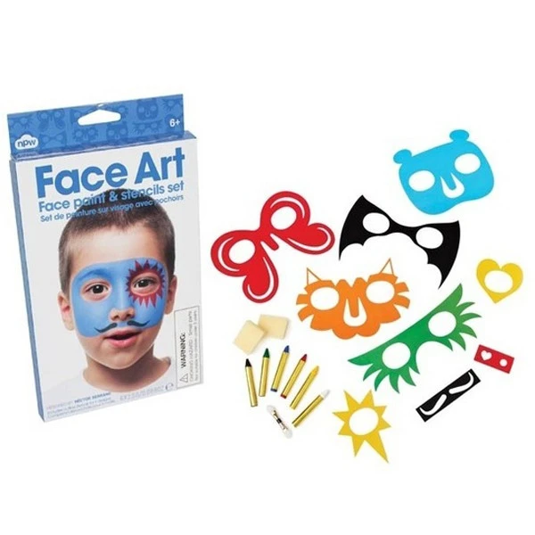 Avec le kit de maquillage facile avec pochoirs pour garçon, vous n’aurez pas besoin d’avoir recours à une maquilleuse professionnelle ! Ce kit comprend des pochoirs permettant de dessiner de fabuleux masques sur le visage de votre garçon. Il suffit simplement de dessiner autour des pochoirs puis de colorier le visage !