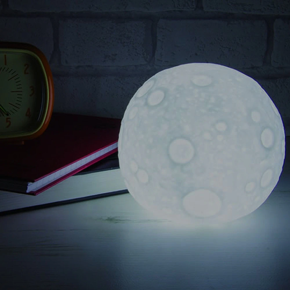 Il ne sera plus nécessaire de chercher à décrocher la lune puisqu’elle sera chez vous pour votre plus grand plaisir ! La lampe d’ambiance Lune est une lampe d’ambiance fort sympathique, un morceau miniature de notre système solaire échoué dans votre salon.