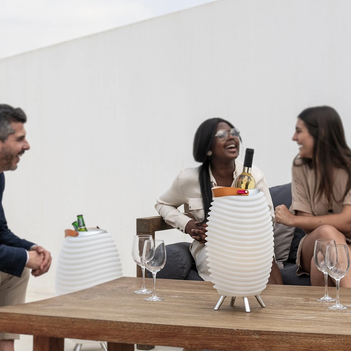 Kooduu n’est pas qu’un simple objet design qui s’illumine ! Il s’agit d’une lampe d’ambiance sans fil, d’un seau à boissons fraîches et d’une enceinte bluetooth !