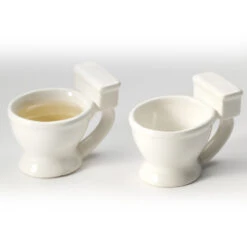 Parfaits pour consommer des breuvages « au goût de chiottes » (expression familière couramment utilisée), vous pourrez y verser toute sorte de boisson « anti-tartre » avec modération. Avec le Lot de 2 verres shots WC, on ne dit plus « cul sec » mais « on tire la chasse » ?