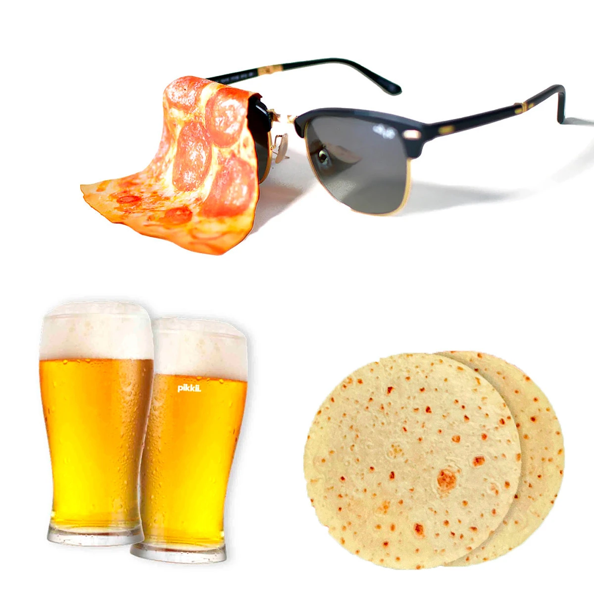 Vendues en lot, ces trois lingettes microfibres sont amusantes et indispensables pour faire disparaître les traces de doigts sur vos lunettes ou votre portable. Une succulente part de pizza aux pepperonis, une pinte de bière et une tortilla composent ce lot. L’illusion est ultra réaliste, l’impression est réalisée avec le plus grand soin et en recto-verso. De quoi vous faire plaisir ou faire un petit cadeau utile et amusant à vos proches !
