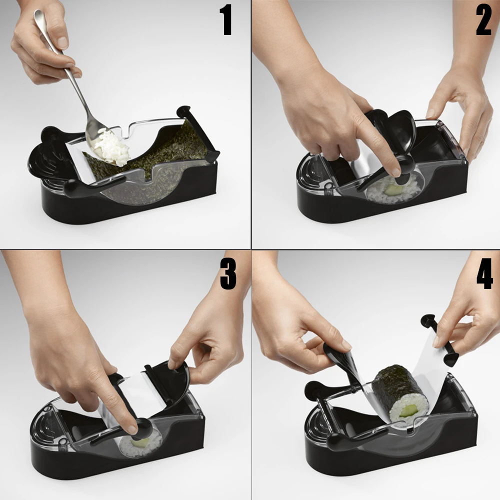 Cet ustensile de cuisine est et vous permettra d’obtenir des en un tour de main ! Vos sushis maki ne sont jamais bien ronds ? çà c’était avant ! Insérez les ingrédients, rabattez l’étrier, tirez la languette et c’est fini ! vous obtiendrez . La machine à sushis makis est peu encombrante et vous permettra ainsi de préparer des sushis salés ou sucrés mais également de délicieux rouleaux de légumes, viande, fromage… il n’y a qu’à laisser libre cours à votre imagination en vous inspirant des quelques idées recette fournies dans le mode d’emploi. Le qui adore les sushis !