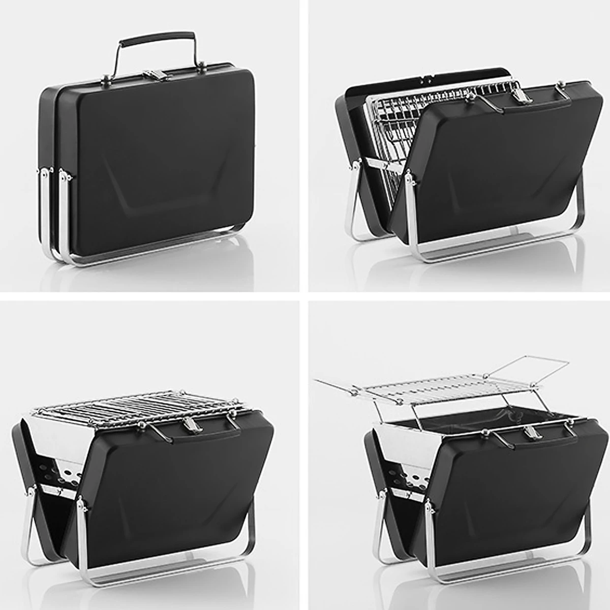 Avec son look de valisette, vous pourriez aisément passer pour un commercial en pleine prospection mais il n’en est rien. Cette est en métal et renferme un et à utiliser où bon vous semble. Au parc, à la plage, sur votre balcon, dans le désert, au bord d’une rivière ou d’un lac ou en forêt, les occasions ne manquent pas pour passer de bons moments entre amis ou en famille et . Barbecue à charbon complet, pliable et portable, il est donc peu encombrant et sa grille repliable permet d’accéder facilement au compartiment à charbon et de retirer les aliments. Vous pouvez également soulever la grille ou l’abaisser pour régler la température. C’est un moyen simple et rapide de faire cuire vos poissons, viandes, légumes et de partager des moments inoubliables avec vos amis et vos proches. A vous les gambas, brochettes, côtes de boeuf, poivrons grillés et autres cuissons en papillotes avec vos proches pendant de belles journées ensoleillées ! !