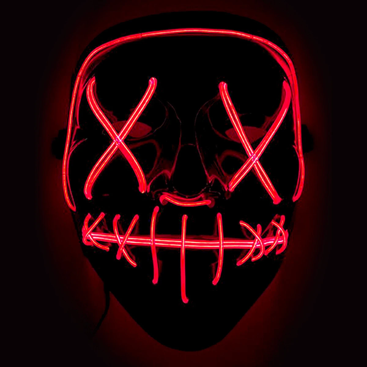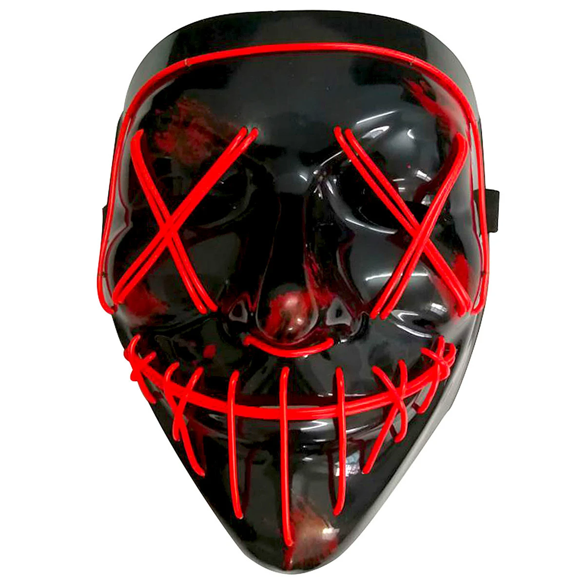 En pleine lumière, il recouvre intégralement le visage de sa couleur noire constellée de traces de sang avec les yeux et la bouche cousus de fil rouge. La nuit, seules les coutures des yeux et de la bouche s’illuminent dans l’obscurité le rendant encore plus effrayant ! Le dispose de trois effets lumineux : fixe, clignotement lent ou rapide. L’éclairage à base de leds ne chauffe pas et est alimenté par un boîtier avec deux piles AA avec un fil d’un mètre de long. Ce simple masque avec un sweat à capuche vous offrira un déguisement qui donnera des frissons à tous ceux qui croiseront votre chemin un soir d’Halloween par exemple.