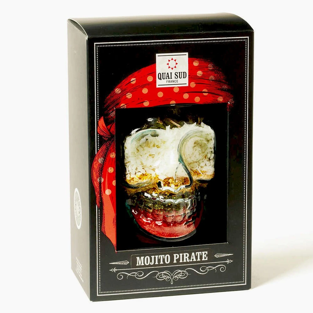 - le kit contient un préparation pour mojito, un verre crâne tête de pirate et une paille,