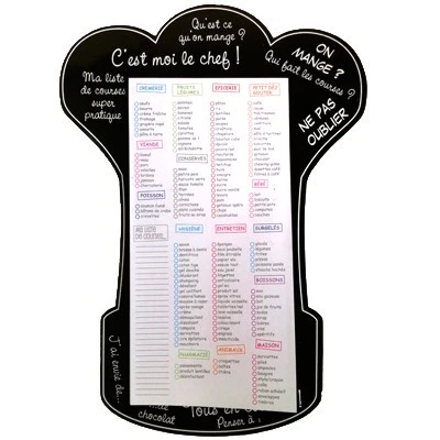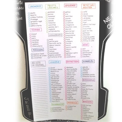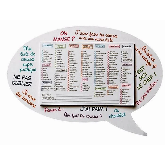 - Support magnétique avec 52 feuillets de liste de courses pré-remplies.