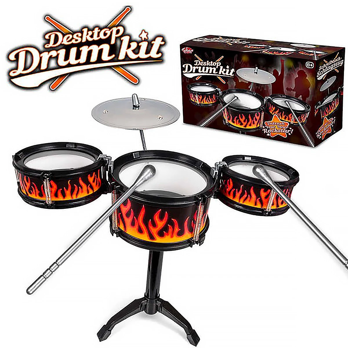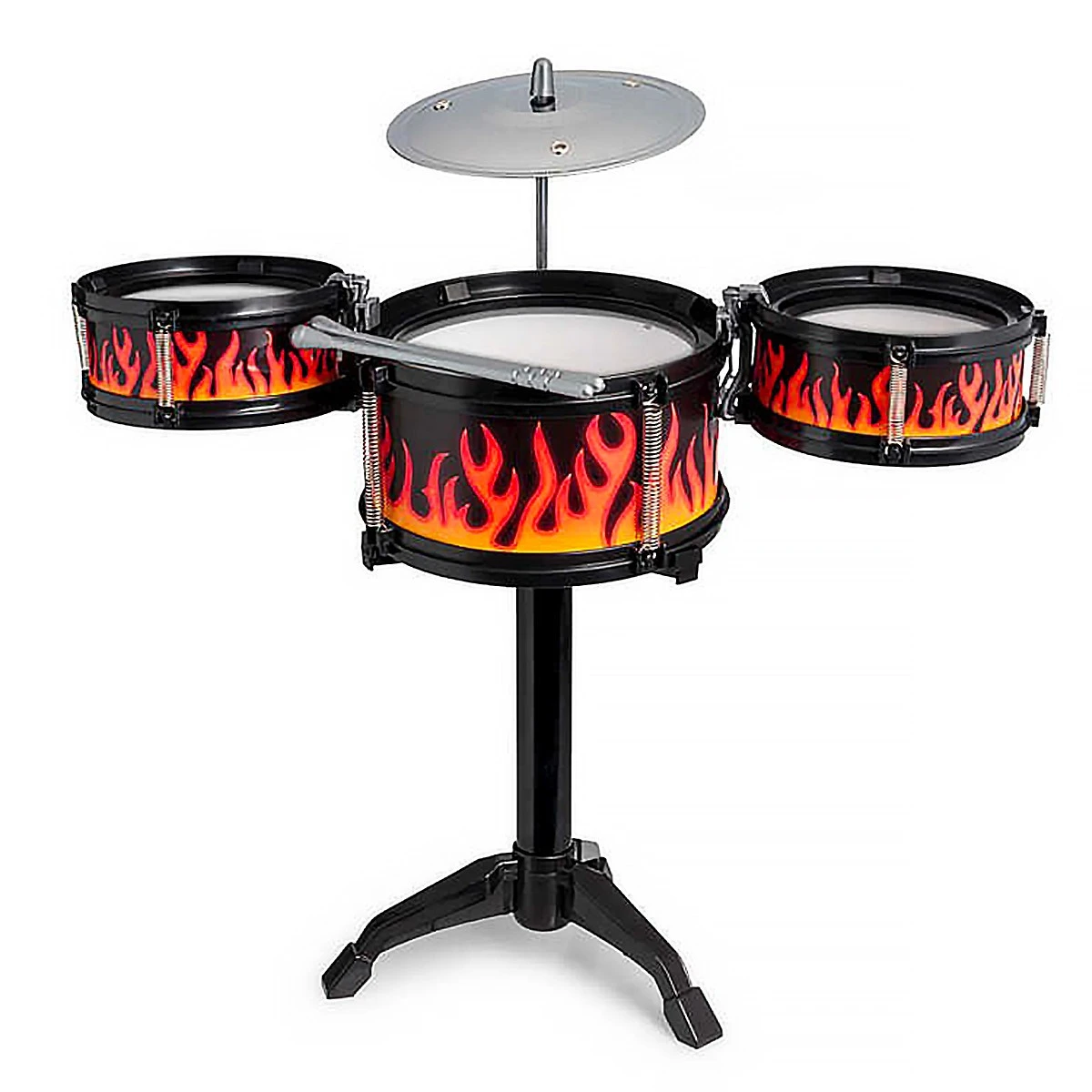 - Se compose de deux petits tambours, une grosse caisse (tout est relatif), une cymbale, deux baguettes et tous les supports,