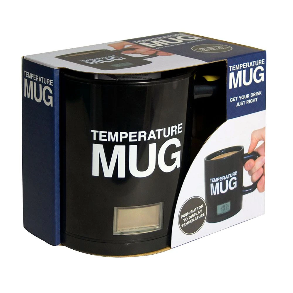 Avec le Mug avec température intégrée, il est maitenant possible de connaître la température de votre boisson instantanément et directement dans votre tasse. Il suffit juste d’appuyer sur le bouton placé au dessus de l’anse pour afficher la température sur le petit écran ! Le Mug avec température permet de boire à la température idéale !