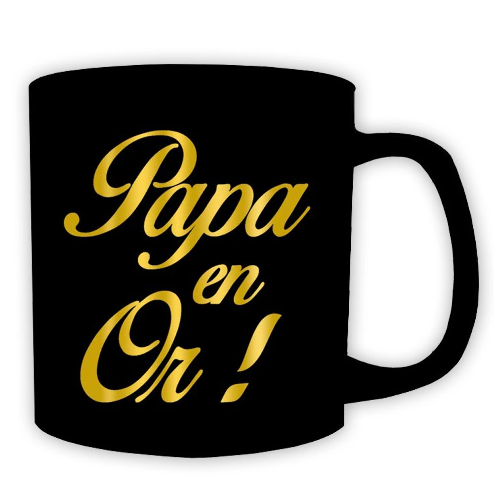Le offre une contenance d’environ 50 cl ! D’un noir profond et recouvert d’une magnifique inscription dorée effet or qui le met en valeur, le Mug géant Papa en Or comblera de bonheur votre papa et lui permettra de se maintenir hydraté en toutes circonstances… en pensant à vous. !