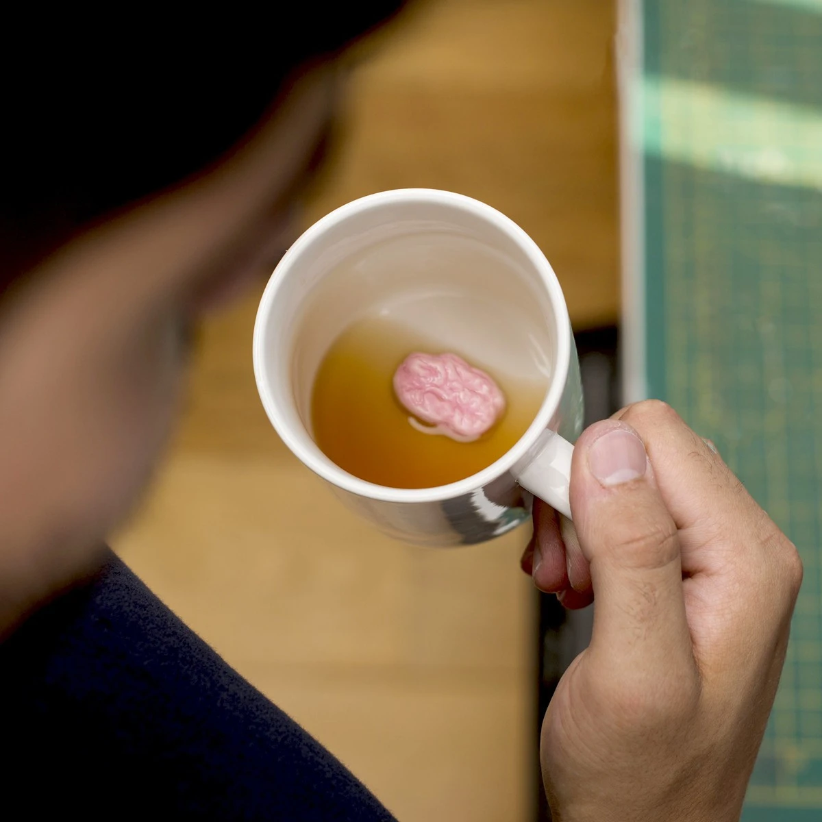 - Un mug bien crado, avec un chewing-gum collé au fond,