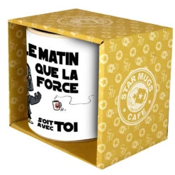 Le reprend le concept du petit déjeuner selon : on utilise la force dès le matin ! pour Dark Vador et tous ceux qui ont la chance de maîtriser le pouvoir de la Force, il suffira de tendre le bras et de faire venir votre tasse jusqu’à vous par la pensée. Pour les autres, comme pour nous, vous devrez vous trainer jusqu’à la cafetière pour vous abreuver de café ou de thé et c’est seulement à ce moment précis que . Le Mug le matin que la force soit avec toi est un must have pour tous les fans de Star Wars et plus généralement pour ceux qui connaissent des matins difficiles.